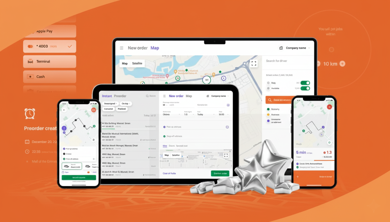 Full-featured taxi and ride-hailing solution with driver apps, dispatch system, and customer apps.