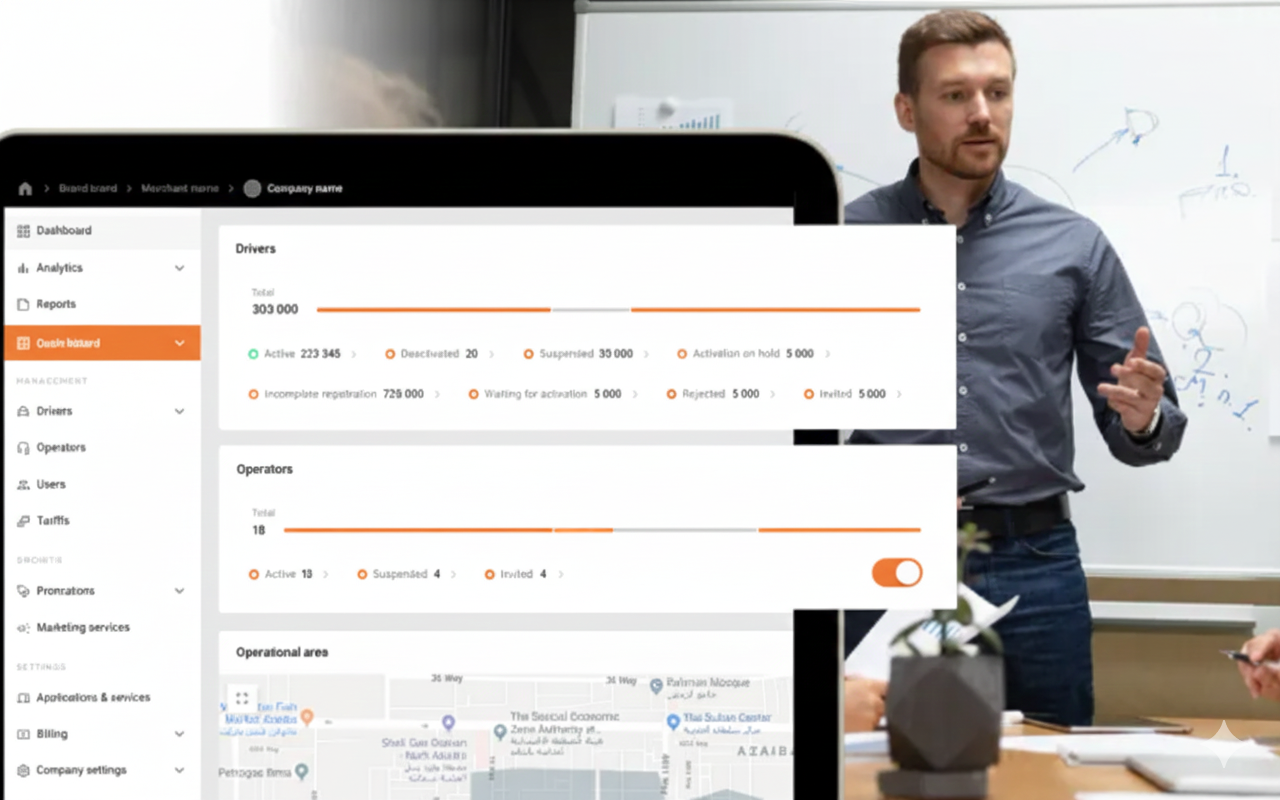 Launch fully branded Customer and Driver apps for iOS and Android with optimized ASO services included. Support all payment methods including card, cash, terminals, and 25+ integrated gateways. Attract new customers with referral programs, promo codes, and discounts.